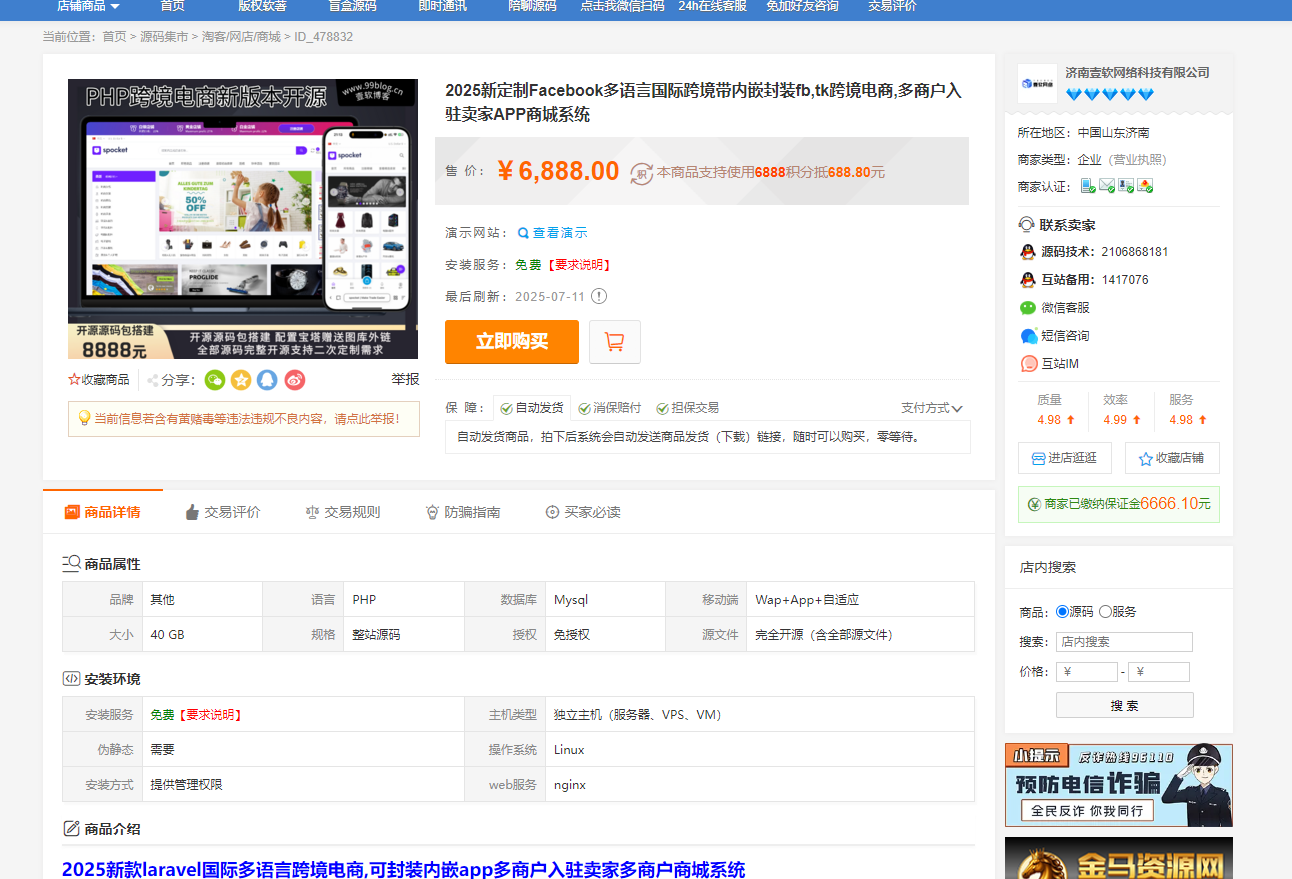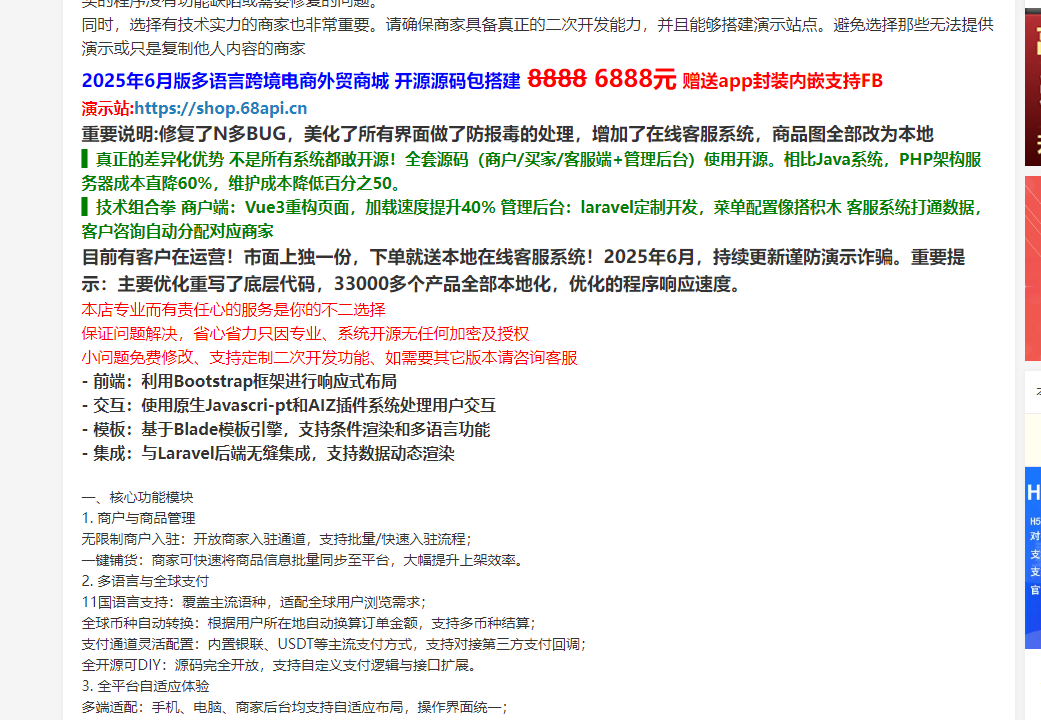 大约半年前,我开始在互站销售这套经过深度优化的程序,定价3888元一套,月销量并不高,本想着勤俭持家,补贴家用,毕竟只能靠代码谋生。我从未设置什么后门或验证机制——毕竟这是基于开源框架改造的,我也没有绝对的所有权,但我确实在力所能及的范围内持续更新和修复BUG,可谓兢兢业业,未敢稍懈。